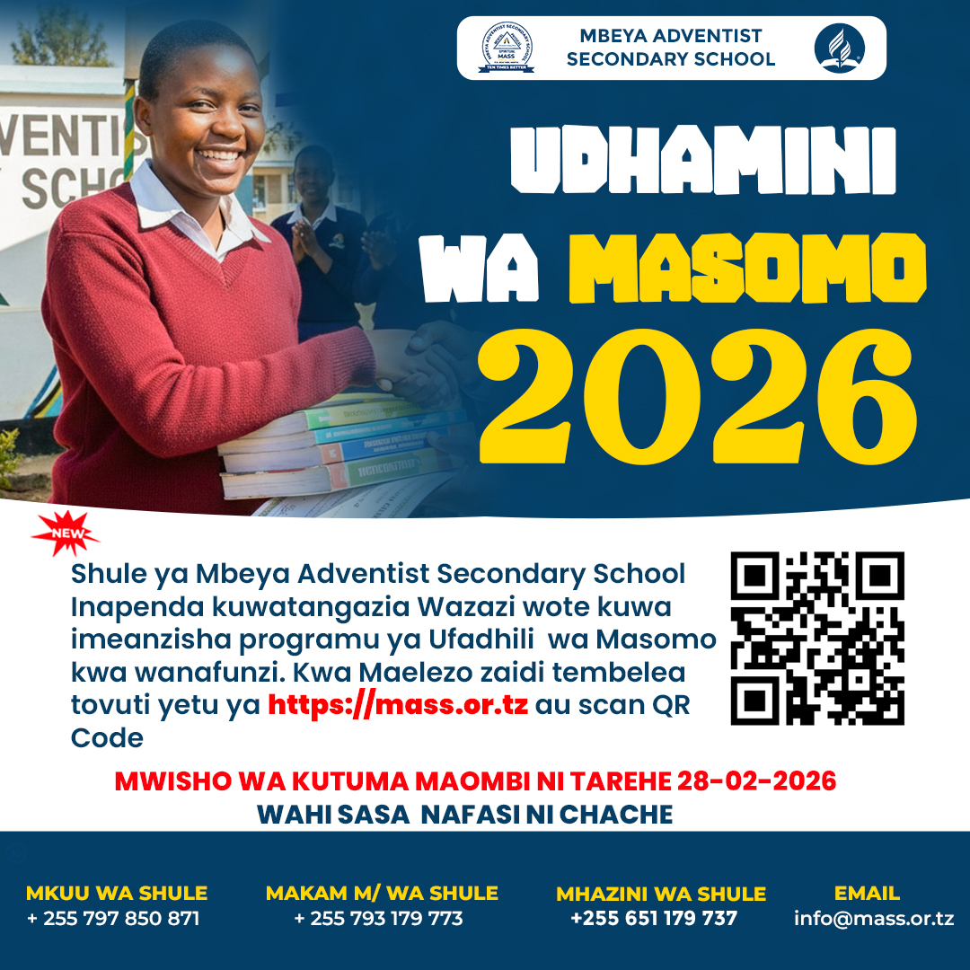 Mbeya Adventist Secondary School is a premier educational institution under the Seventh-day Adventist Church in the Southern Highlands Conference. We are committed to providing quality education that integrates academic excellence with character development and spiritual growth.